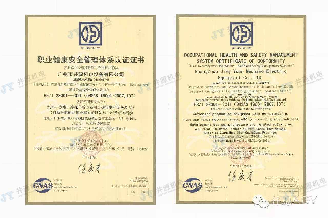2016年5月,廣州市井源機(jī)電設(shè)備有限公司正式獲頒國(guó)家職業(yè)健康安全管理體系認(rèn)證證書(shū),標(biāo)志著井源公司正式通過(guò)了職業(yè)健康安全管理體系(GB/T28001-2011)的要求,實(shí)現(xiàn)了公司管理與國(guó)際標(biāo)準(zhǔn)化管理的接軌。