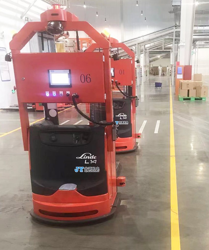 井源機(jī)電SLAM激光導(dǎo)引叉車型AGV采用林德L14車體改造,在寧夏伊利項(xiàng)目中主要參與原料及輔料的配送。原料采用集中配送模式,AGV具備優(yōu)異的自主控制能力,在設(shè)置反光筒的情況下,定位精度可精確控制在±5mm,其根據(jù)預(yù)設(shè)的順序,實(shí)現(xiàn)物料自動(dòng)化運(yùn)轉(zhuǎn)。