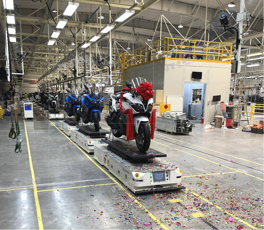 Zhejiang Chunfeng Power Co., Ltd. is a company specializing in the research and development of all-terrain off-road vehicles (ATV, UTV, SSV), large-displacement motorcycles and supporting water-cooled engine products. In recent years, Jingyuan Electromechanical has maintained a good cooperative relationship with Chunfeng Power. In addition to the entire assembly line of Chunfeng Kaitmore, it has continued to undertake the general contracting task of Chunfeng Power's new second-wheel large-displacement production line for the entire vehicle assembly line. In order to realize the standardized management of the project, improve the production efficiency, and meet the annual production capacity of 60,000 two-wheeled large-displacement motorcycles, Jingyuan Electromechanical adopts 26 load-bearing assembled AGVs and 18 latent traction AGVs to realize the spring breeze power motorcycle. Vehicle assembly and SPS material distribution are fully automatic.