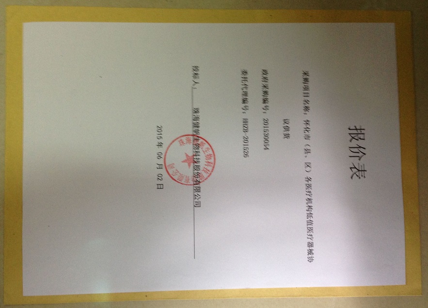 參加懷化市(縣、區(qū))各醫(yī)療機(jī)構(gòu)低值醫(yī)療器械協(xié)議供貨的供應(yīng)商,經(jīng)審查絕大多數(shù)的供應(yīng)商的報(bào)價(jià)密封都不合格,現(xiàn)要求各供應(yīng)商重新遞交一份,接收截止時(shí)間2015年7月13日(逾期視為放棄投標(biāo)),格式務(wù)必按招標(biāo)文件中的格式。